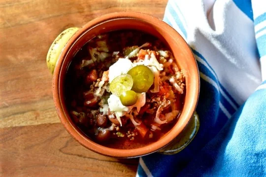 As always, I’m in it for the food and will be whipping up a batch of my new favorite crockpot chili. It takes little time to prep and cooks in the crockpot until the game begins. It’s spicy and hearty and positively perfect for this cold snap we’re experiencing. If you’re hosting a party (or avoiding celebrations altogether), this is the perfect Sunday (Super Bowl) supper for you.